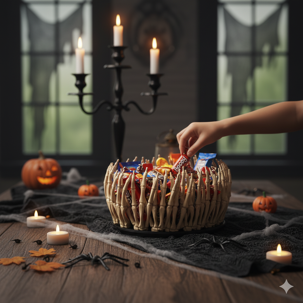 Give your trick-or-treaters a frightfully good time with the Handy Halloween Candy Bowl! This unique 3D-printed bowl features a spooky perimeter of bony skeleton fingers, ready to "grab" all your favorite Halloween treats. It's the perfect ghoulish accessory to hold candy, eerie decorations, or anything else you dare to place within its skeletal grasp. Get a hand on yours before they're gone!