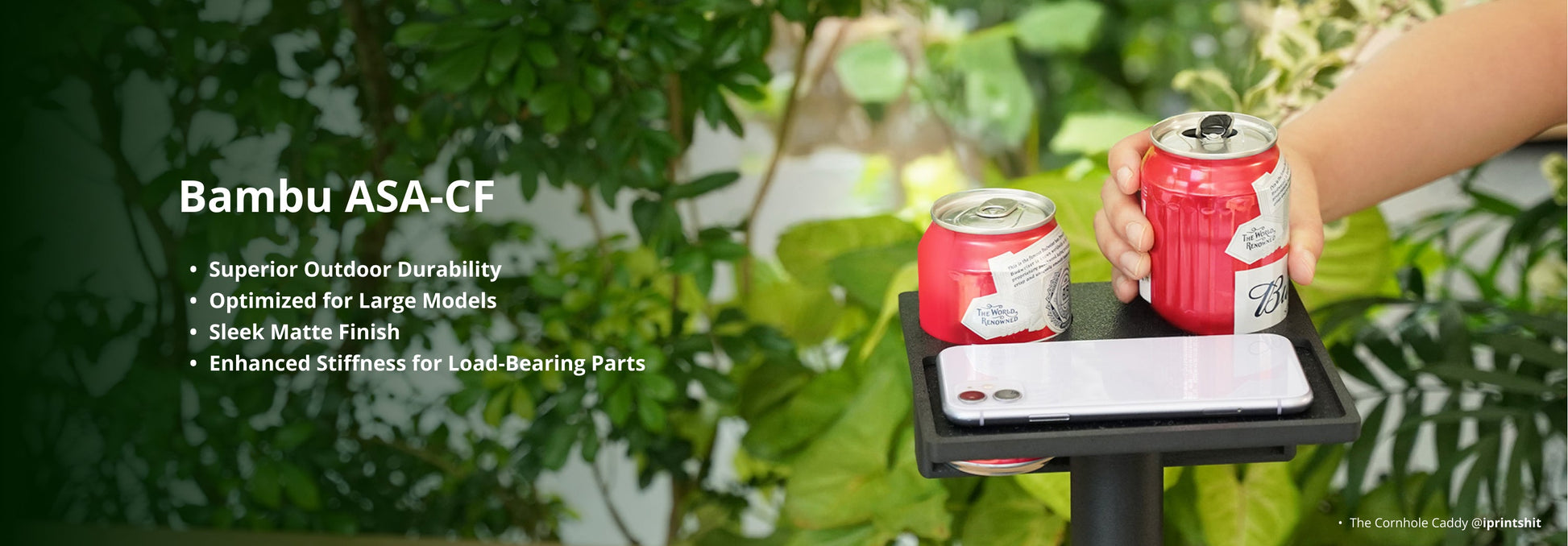 Сонце, дощ, спека — хай буде добре. Армований вуглецевим волокном ASA продовжує працювати та виглядати добре, стійкий до ультрафіолетового випромінювання, деформації та водопоглинання краще, ніж звичайний ASA. З температурою нагрівання HDT близько 110 °C цей матеріал стійкий до розм'якшення в теплому середовищі .